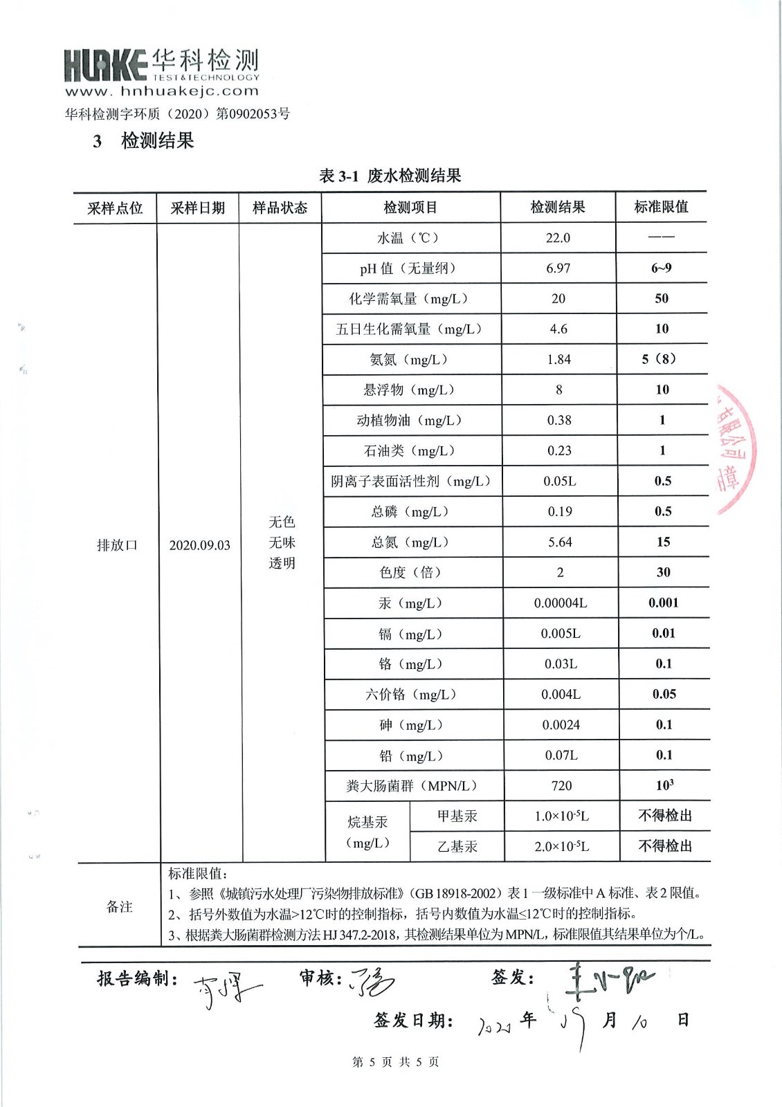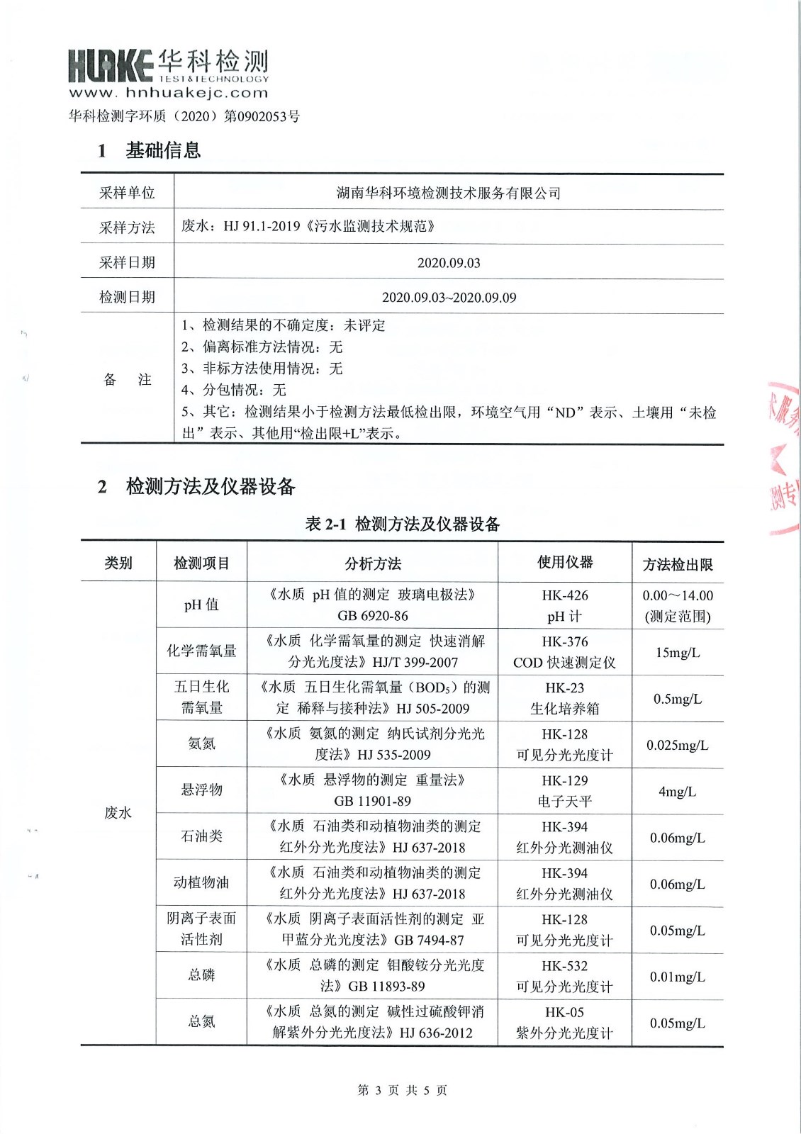 湖南怀德检测技术有限公司 2025年10月 出水水质检测报告
