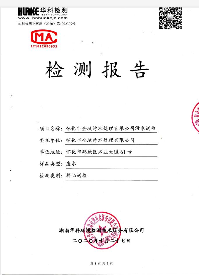 湖南怀德检测技术有限公司 2025年10月 出水水质检测报告